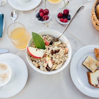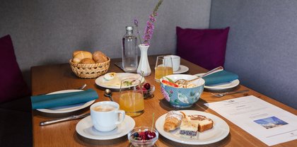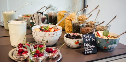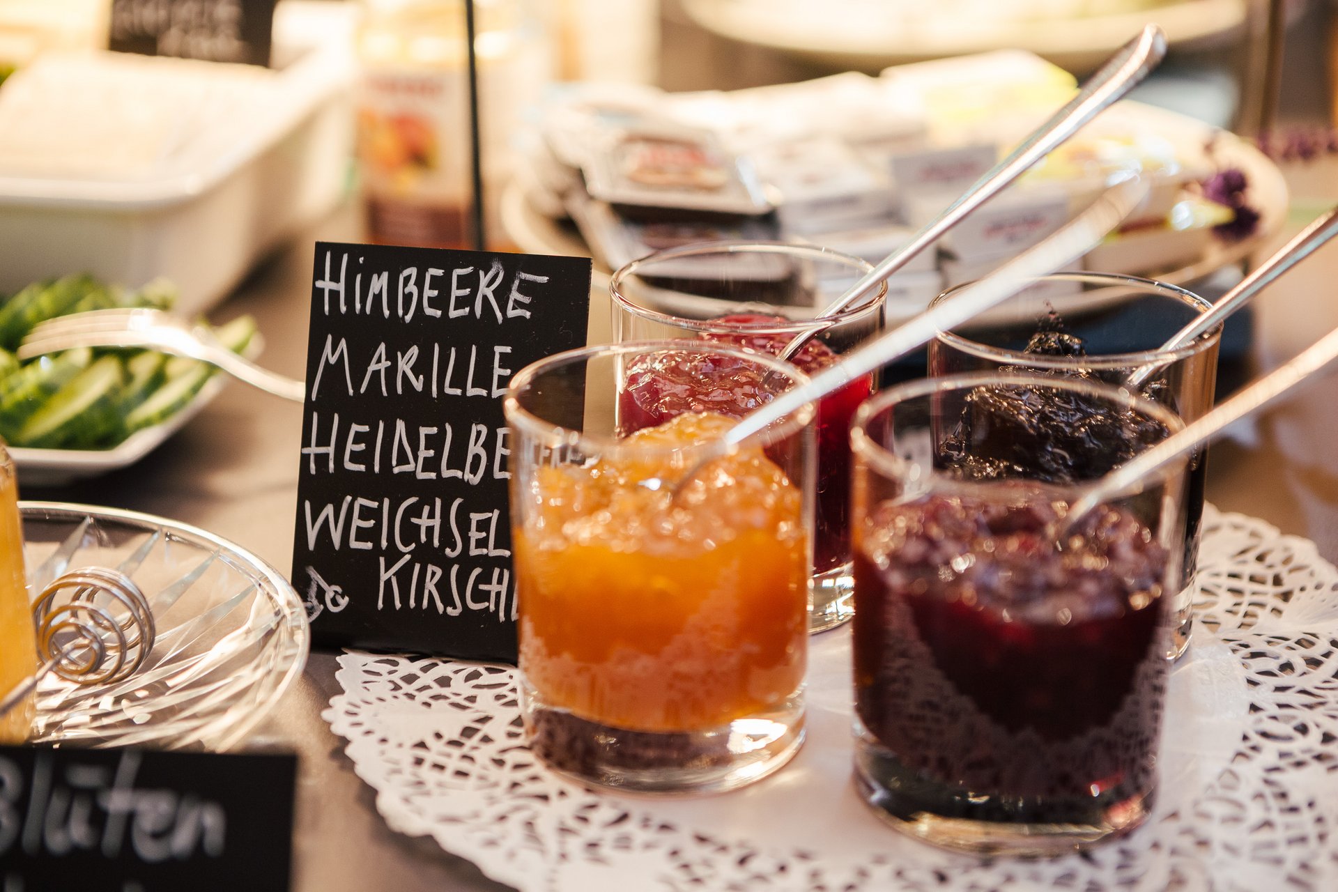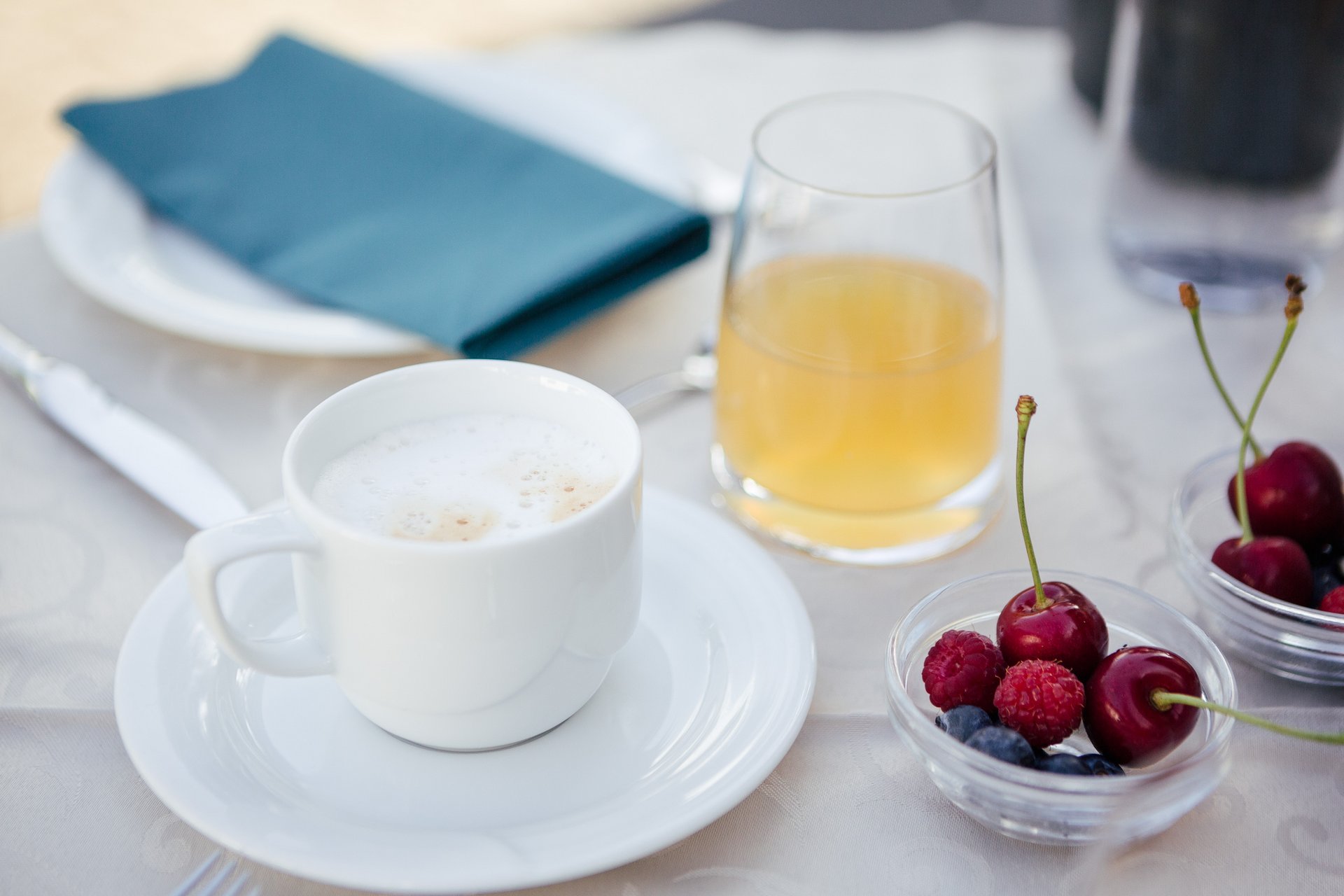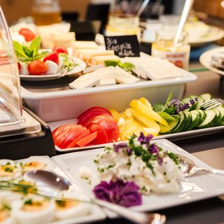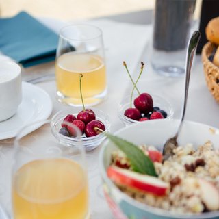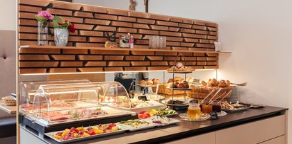 Knusprig, fruchtig, herzhaft, pikant, und süß, dazu duftender Kaffee- oder Teegenuss. Bei uns beginnen Sie den Tag mit einem guten Frühstück, von 7:30 Uhr bis 10:00 Uhr. Genießen Sie frische Brötchen von der Meraner Handwerksbäckerei und vielen Südtiroler Qualitätsprodukten. Außerdem verwöhnen wir Sie mit frischem Obstsalat, Müslis, süßen Brotaufstrichen, Säften, gekochten Eiern und süßem Gebäck. An warmen Tagen können Sie gerne auch im Freien frühstücken.