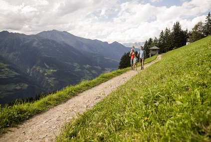 Von Burgstall mit der Seilbahn (gratis mit dem Südtirol Guest Pass) nach Vöran. Start in Vöran an der Bergstation der Seilbahn auf dem Weg Nr. 1 und Nr. 12 in Richtung Hafling. Beim Eggerhof rechts ab zum Knottnkino mit Aussicht auf das gesamte Etschtal. Wieder retour zum Weberhof und weiter über den Schützenbründlweg. Einkehr im Restaurant, Cafe “Das Stübele”, Montag Ruhetag. Den Weg Nr. 14 retour Richtung Gasthof Grüner Baum, weiter der Markierung zurück zum Ausgangspunkt Vöran Dorf folgen.